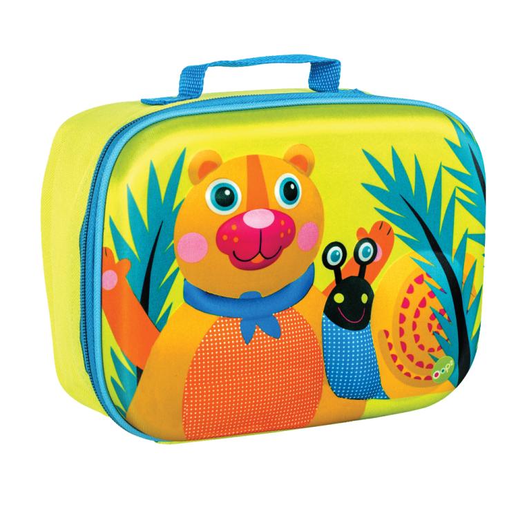 Kolorowa torba doskonała do zabrania ze sobą drugiego śniadania czy przekąsek. Ozdobiona jest wypukłymi wizerunkami zwierzątek w przyjaznych i wyraźnych kolorach. Posiada izolację termiczną, dzięki czemu długo utrzyma świeżość zapakowanego posiłku.