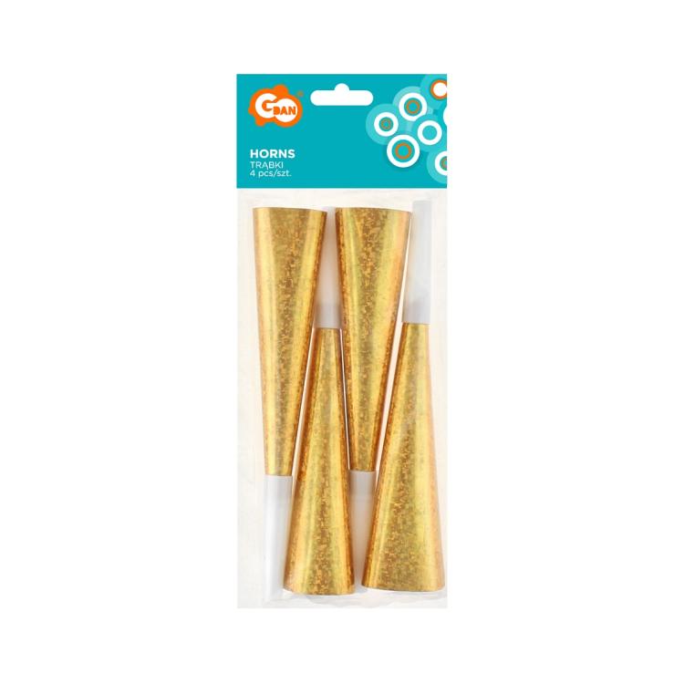 Trąbki to nieodzowny element każdej imprezy Sylwestrowej, gdzie pomogą stworzyć niesamowitą atmosferę podczas odliczania ostatnich sekund roku. Sprawdzą się również na urodzinach, rocznicach czy innych ważnych wydarzeniach, które zasługują na wyjątkową oprawę. Zestaw składa się z 4 trąbek z plastikowym ustnikiem.