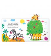 Co ochłodzi tygrysa? Gdzie ukryła się żyrafa? Jakie zwierzę ma ogromną paszczę? Wystarczy przyłożyć paluszek do kółeczka na ruchomych elementach i poruszać nimi – wówczas odkrywają się schowane części ilustracji i znajdujemy odpowiedzi na pytania.