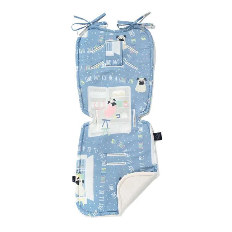 Stylowa wyściółka do wózka spacerowego. Jest dwustronna, mięciutka i bajecznie kolorowa. Zapewnia Maluchowi ciepło pod plecami, przyjemnie chroni przed syntetycznym obiciem wózka w czasie gorących dni oraz zapewnia komfort jazdy.