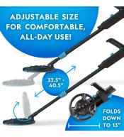 Prosta obsługa ułatwi dzieciom rozpoczęcie i prowadzenie poszukiwań. Wystarczy włączyć i można zacząć zabawę. Alerty dźwiękowe poinformują o wykrytym metalowym przedmiocie. Dzięki regulowanej długości ramienia, wygodnemu uchwytowi i niskiej wadze młodzi odkrywcy mogą wygodnie prowadzić poszukiwana przez wiele godzin. Wykrywacz można łatwo i szybko złożyć do niewielkich rozmiarów i schować do plecaka. Po złożeniu wykrywacz ma wymiary około 33 x 24 x 10 cm.