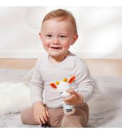 Żyrafa z Kolekcji "Dobranoc", to urocza edukacyjna maskotka, która będzie z dzieckiem przez cały czas. W dzień jako grzechotka, nocą zaś ukoi, wyciszy i pomoże zasnąć maluszkowi.