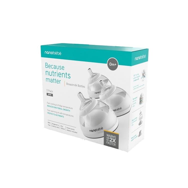 Dziecko karmione piersią przyzwyczajone jest do obrysu matczynej piersi - podczas przejścia z karmienia piersią do picia mleka z butelki Nanobebe maluch nie odczuje tak dużej zmiany jak w przypadku, przejścia do karmienia standardowymi butelkami. Jej przyjazny kształt sprawia, że dziecko jest w stanie utrzymać butelkę oraz samodzielnie spożywać pokarm o wiele szybciej niż w przypadku tradycyjnych butelek. Ze względu na specjalnie zaprojektowaną wklęsłą powierzchnię na dnie butelki mleko równomiernie wypełnia jej wnętrze, co pozwala na 2-3 razy szybsze ogrzanie oraz schłodzenie pokarmu oznacza to mniej czasu na przygotowanie i więcej czasu na karmienie. Skrócenie tych procesów ma jeszcze jedną zaletę - redukuje namnażanie bakterii i pozwala na zachowanie wartości odżywczych zawartych w mleku.
