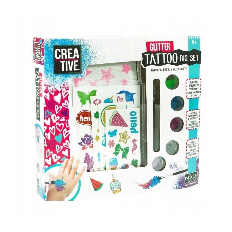 Ten super zestaw to idealny wybór dla małych miłośniczek brokatu i zmywalnych tatuaży!