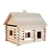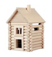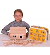 Zestaw klocków konstrukcyjnych zamknięty w poręczniej walizce. Pozwala na zbudowanie co najmniej dwunastu typów domków z drewnianych, bukowych bali.