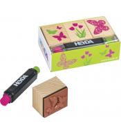 Do zestawu dołączony jest sztyft z dwiema nasączonymi tuszem poduszkami, w kolorze zielonym i czerwonym.