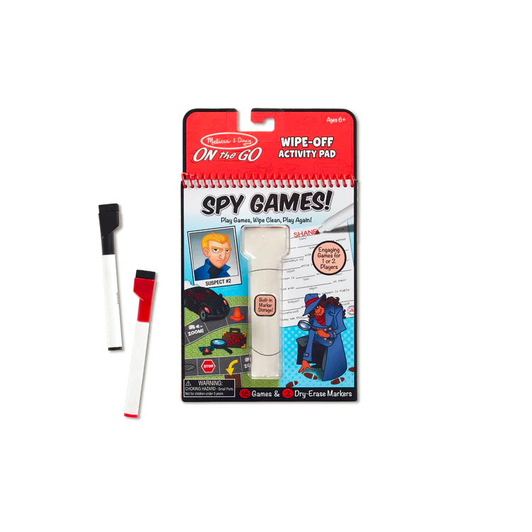 Gry szpiegowskie z dwoma ścieralnymi mazakami - idealna zabawa w podróży.