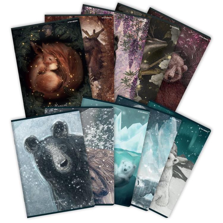 Poznaj unikalną kolekcję zeszytów Forest Ice, która łączy w sobie dwa fascynujące światy – tajemniczy klimat leśnych zwierząt oraz mroźne, arktyczne krajobrazy.